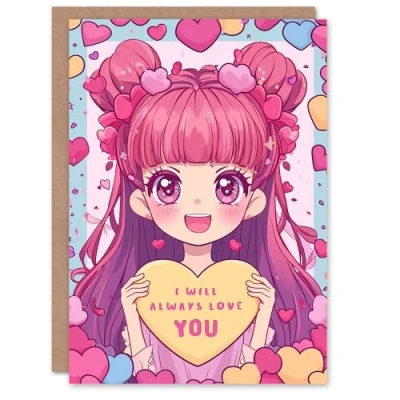 Artery8 Valentines Day Greeting Card Anime Always Love You Cute Manga For Her Wife Partner