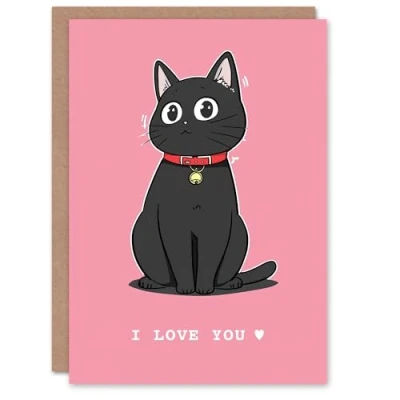 Artery8 Valentines Day Greeting Card Anime Black Cat Love You Manga For Her Wife Partner