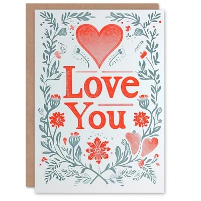 Artery8 Valentines Day Greeting Card Floral Love You Heart Letterpress For Her Wife Partner