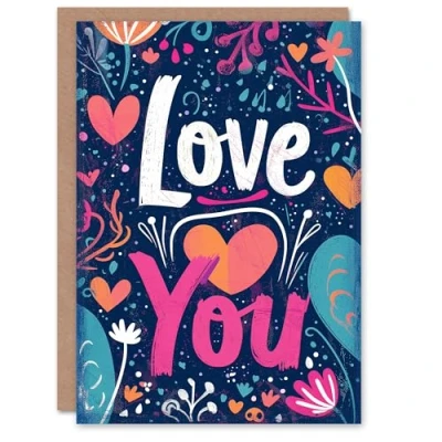 Artery8 Valentines Day Greeting Card Flowers Hearts Love You For Her Wife Partner