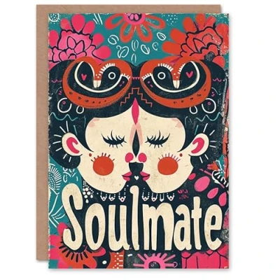 Artery8 Valentines Day Greeting Card Gay Soulmate Lesbian Folk Art For Her Wife Partner