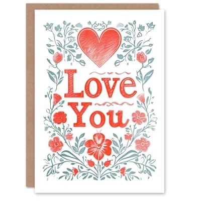 Artery8 Valentines Day Greeting Card Heart Love You Floral Letterpress For Her Wife Partner