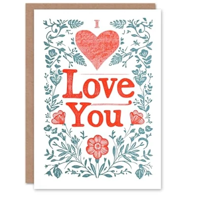Artery8 Valentines Day Greeting Card I Heart Love You Floral Letterpress For Her Wife Partner