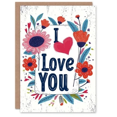 Artery8 Valentines Day Greeting Card I Love You Bright Boho Flower Rustic For Her Wife Partner