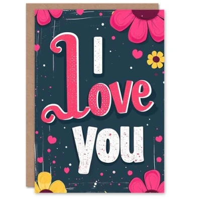 Artery8 Valentines Day Greeting Card I Love You Flowers Hearts For Her Wife Partner