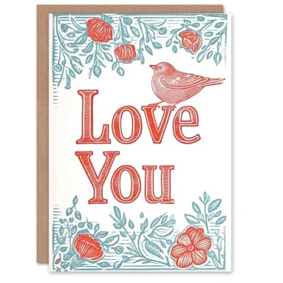 Artery8 Valentines Day Greeting Card Love You Boho Floral Folk Art Bird For Her Wife Partner