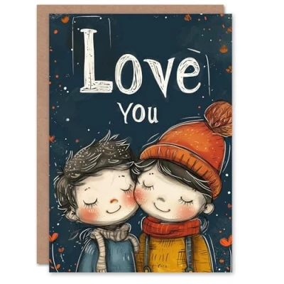 Artery8 Valentines Day Greeting Card Love You Cute Kids Illustration For Her Wife Partner