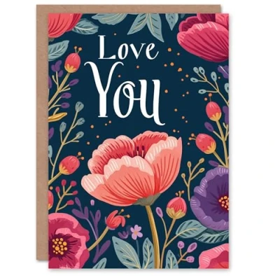 Artery8 Valentines Day Greeting Card Love You Floral Pattern For Her Wife Partner