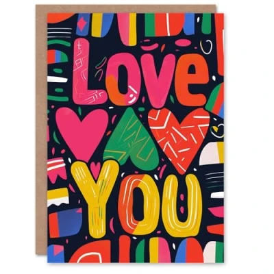 Artery8 Valentines Day Greeting Card Love You Graffiti Hearts For Her Wife Partner