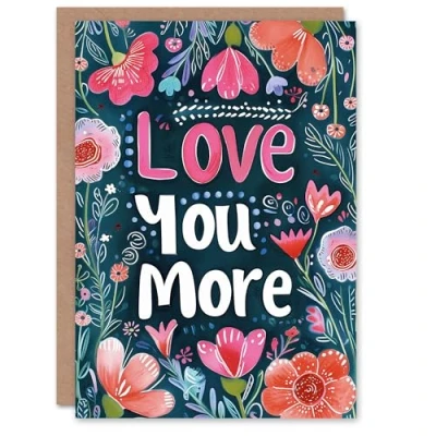 Artery8 Valentines Day Greeting Card Love You More Watercolour Flowers For Her Wife Partner