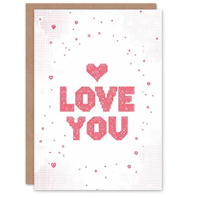 Artery8 Valentines Day Greeting Card Love You Pixels Simple Pink For Her Wife Partner