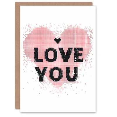 Artery8 Valentines Day Greeting Card Love You Simple Pixel Art Heart For Him or Her