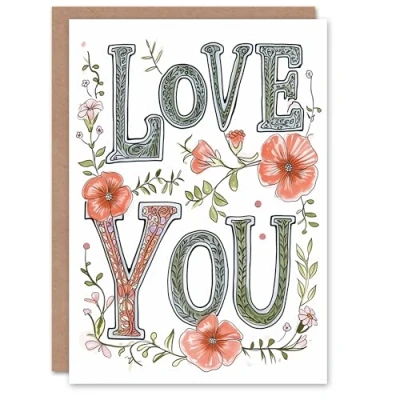 Artery8 Valentines Day Greeting Card Love You Typography Flowers For Her Wife Partner