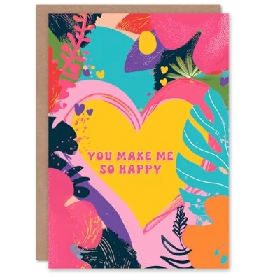 Artery8 Valentines Day Greeting Card Make Me So Happy Tropical Floral For Her Wife Partner