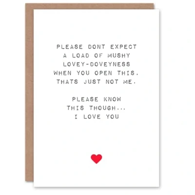 Artery8 Valentines Day Greeting Card Not Mushy But I Love You For Him or Her
