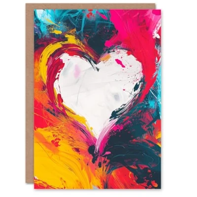 Artery8 Valentines Day Greeting Card Oil Paint Simple Love Heart No Words Message For Him Husband Partner