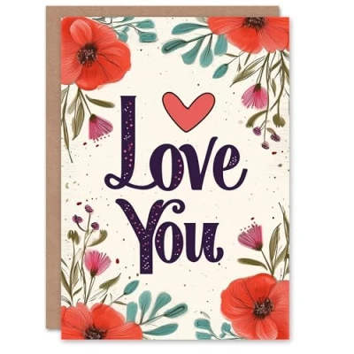 Artery8 Valentines Day Greeting Card Poppies Red Flowers Love You Simple For Her Wife Partner
