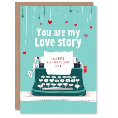 Artery8 Valentines Day Greeting Card You Are My Love Story Typewriter For Him or Her