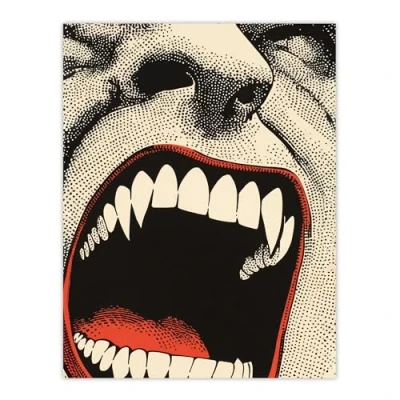 Artery8 Vampire Teeth Mouth Close Up Pop Art Horror Living Room Large Wall Poster Print Thick Paper 18X24 Inch