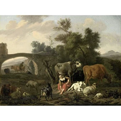 Artery8 Van Bergen Landscape Herdsmen Cattle Painting Art Print Canvas Premium Wall Decor Poster Mural