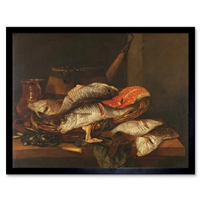 Artery8 Van Beyeren Still Life With Fish Painting Art Print Framed Poster Wall Decor 12x16 inch
