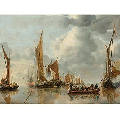 Artery8 Van De Cappelle Fleet Saluting State Barge Art Print Canvas Premium Wall Decor Poster Mural