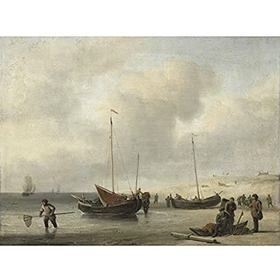 Artery8 Van De Velde Fishing Boats On Shore Art Print Canvas Premium Wall Decor Poster Mural