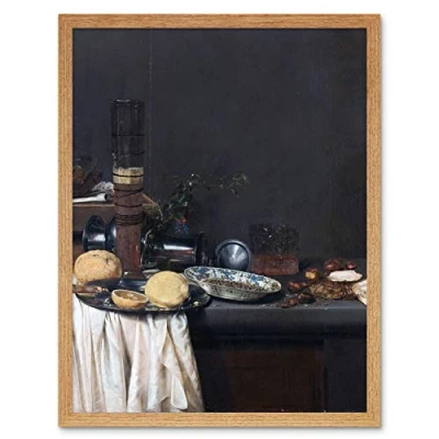 Artery8 Van De Velde Still Life Tall Beer Glass Painting Art Print Framed Poster Wall Decor 12x16 inch