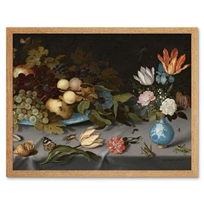 Artery8 Van Der Ast Still Life Fruit Flowers Painting Art Print Framed Poster Wall Decor 12x16 inch