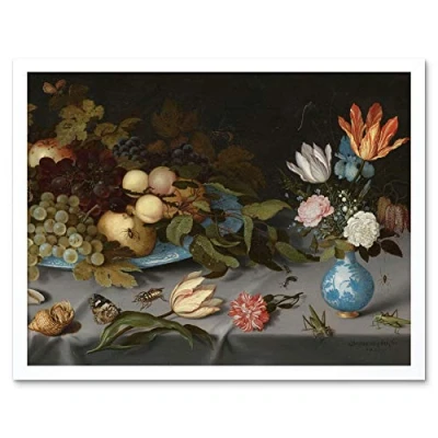 Artery8 Van Der Ast Still Life Fruit Flowers Painting Art Print Framed Poster Wall Decor 12x16 inch