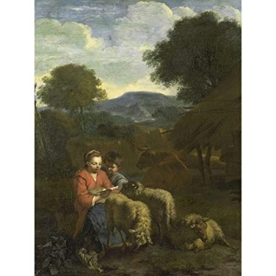 Artery8 Van Der Does Shepherdess Reading Child Sheep Premium Wall Art Canvas Print 18X24 Inch