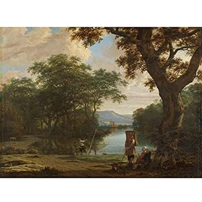 Artery8 Van Der Haagen Landscape Fisherman Square Net Art Print Canvas Premium Wall Decor Poster Mural