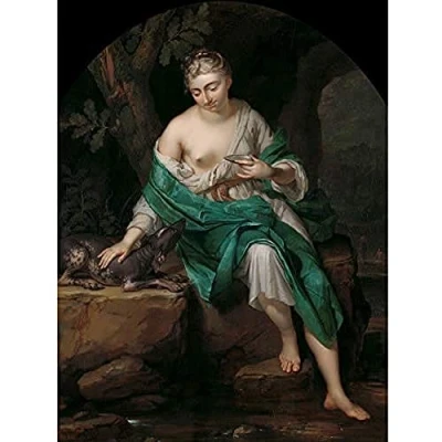 Artery8 Van Der Mijn Woman With A Dog Art Print Canvas Premium Wall Decor Poster Mural