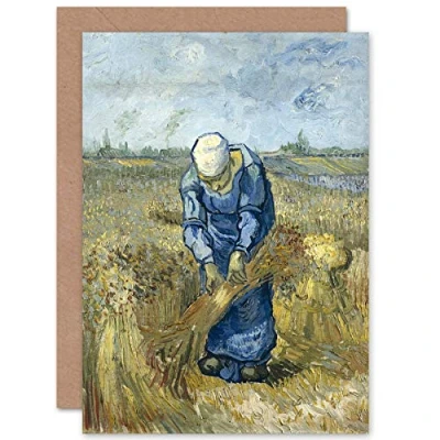 Artery8 Van Gogh Peasant Woman Binding Sheaves After Millet Fine Art Greeting Card Plus Envelope Blank Inside