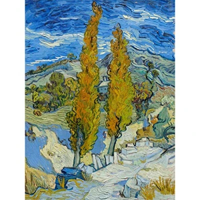 Artery8 Van Gogh Poplars At Saint Remy Premium Wall Art Canvas Print 18X24 Inch