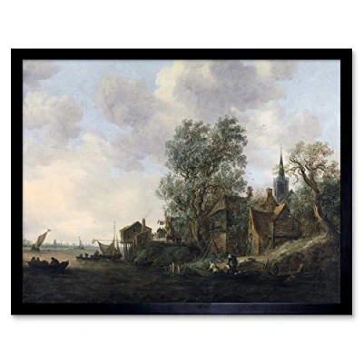 Artery8 Van Goyen View Town On A River Landscape Painting Art Print Framed Poster Wall Decor 12x16 inch