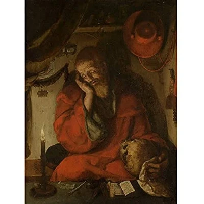 Artery8 Van Leyden Saint Jerome Study Candlelight Unframed Wall Art Print Poster Home Decor Premium