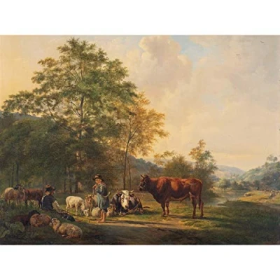 Artery8 Van Os Hilly Landscape Shepherd Cattle Painting Premium Wall Art Canvas Print 18X24 Inch