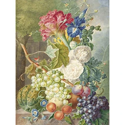 Artery8 Van Os Still Life Flowers Fruit Painting Premium Wall Art Canvas Print 18X24 Inch