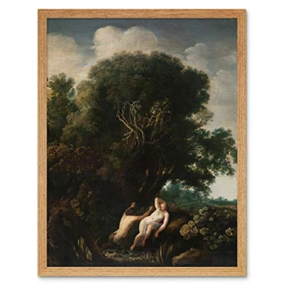 Artery8 Van Uyttenbrouck Bathing Nymph Taken Surprise Art Print Framed Poster Wall Decor 12x16 inch