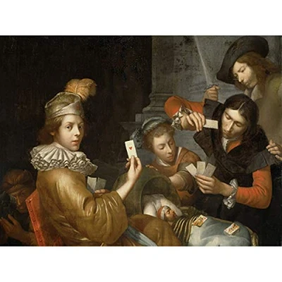 Artery8 Van Wijckersloot Card Game On The Cradle Baby Art Print Canvas Premium Wall Decor Poster Mural
