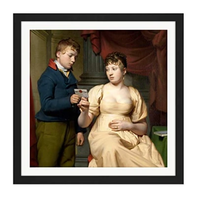 Artery8 Vermeer The Love Letter Boy Woman Painting Square Wooden Framed Wall Art Print Picture 16X16 Inch