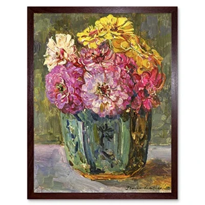 Artery8 Verster Still Life Green Zinnias In Jar Painting Art Print Framed Poster Wall Decor 12x16 inch