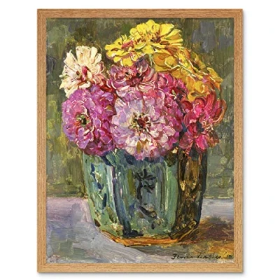 Artery8 Verster Still Life Green Zinnias In Jar Painting Art Print Framed Poster Wall Decor 12x16 inch