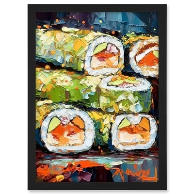 Artery8 Vibrant Japanese Cuisine Sushi Roll Oil Painting Artwork Framed A3 Wall Art Print