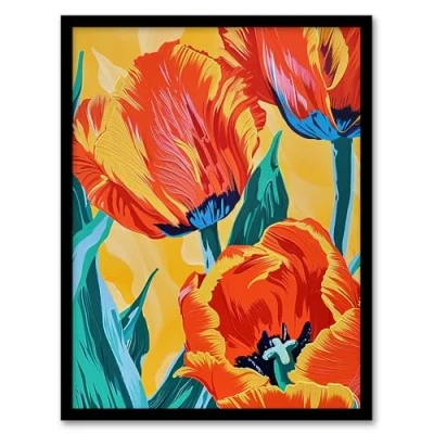 Artery8 Vibrant Orange Tulip Flowers Floral Oil Painting Living Room Artwork Framed Wall Art Print A4