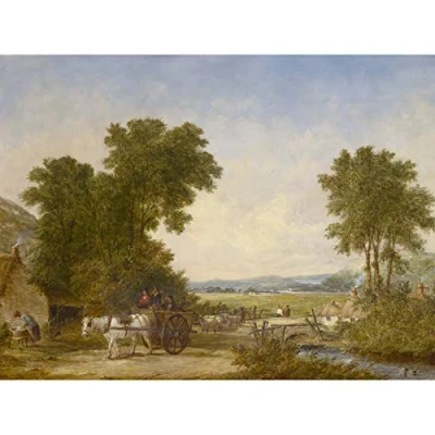 Artery8 Vickers Wooded Country Landscape Figures Cart Painting Art Print Canvas Premium Wall Decor Poster Mural