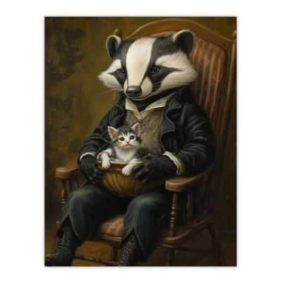 Artery8 Victorian Animals Fantasy Badger with a Kitten Nursery Kids Bedroom Large Wall Art Poster Print Thick Paper 18X24 Inch
