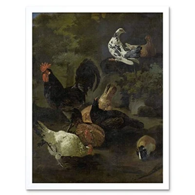 Artery8 Victors Cock Hens Doves And Marmot Painting Art Print Framed Poster Wall Decor 12x16 inch