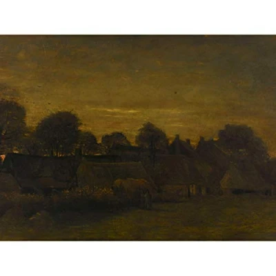Artery8 Vincent Van Gogh Farming Village At Twilight Art Print Canvas Premium Wall Decor Poster Mural